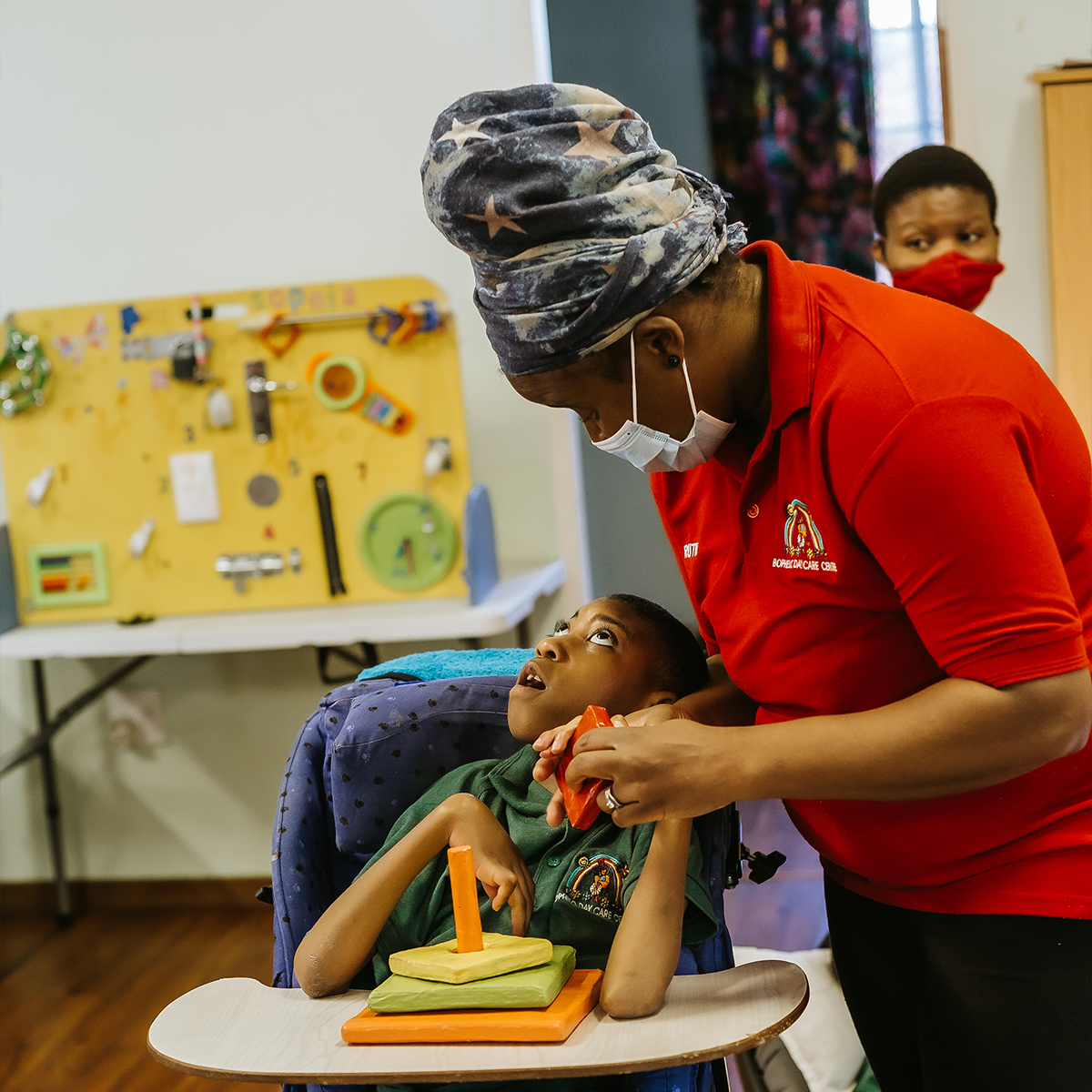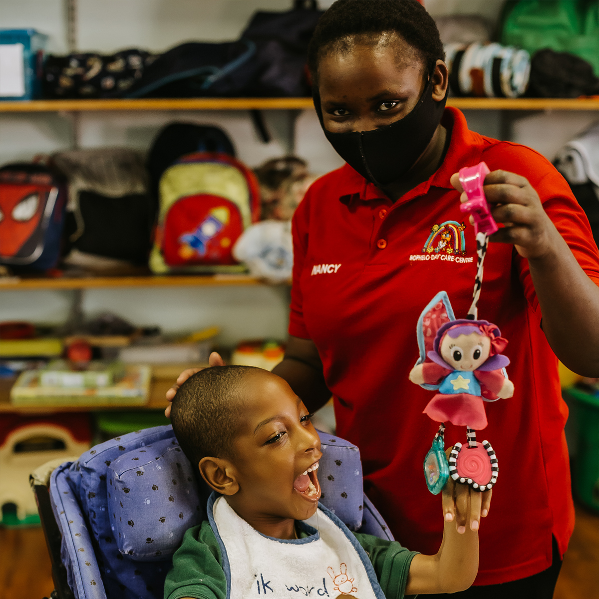 Each child with a disability is unique and their needs vary. The caregivers at Bophelo Day Care Centre provide unique help to each child to be able to play in their own way, communicate in their own way, sit, change positions during the day and experience many fun activities (such as time in the garden or singing time).